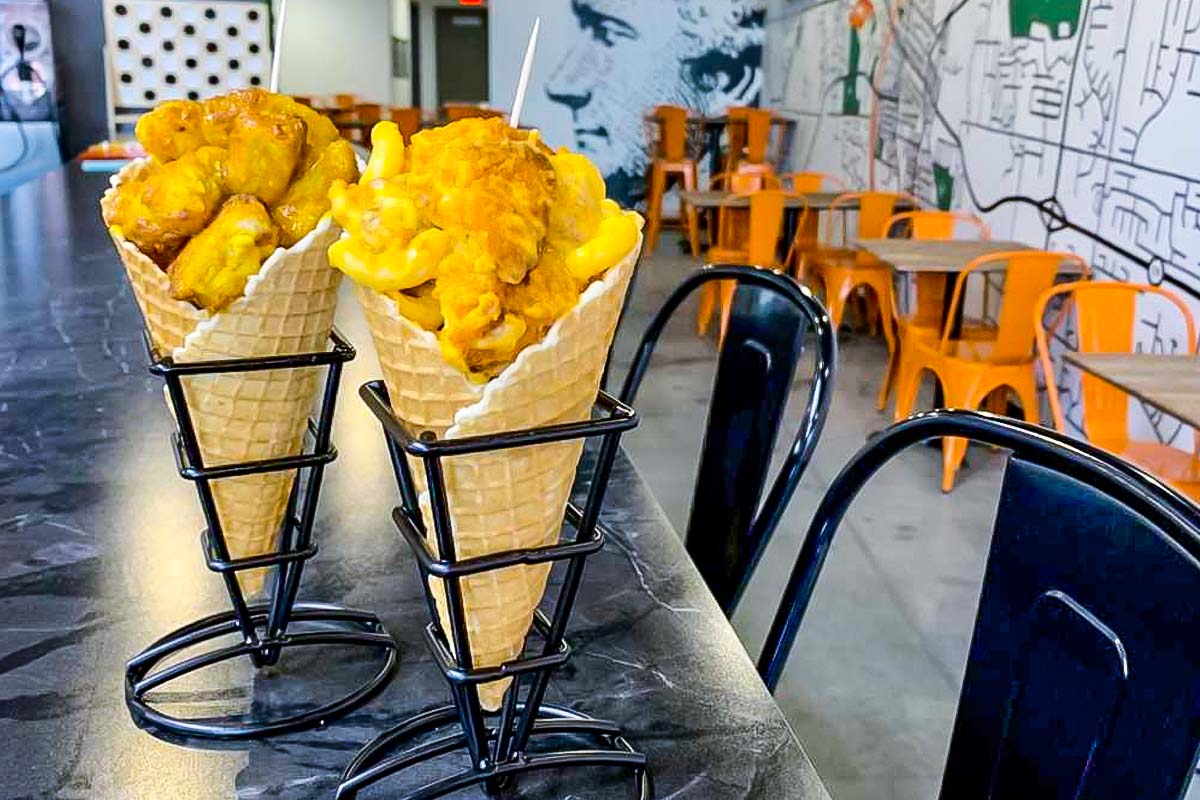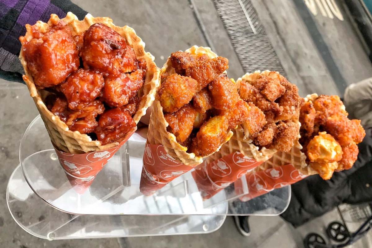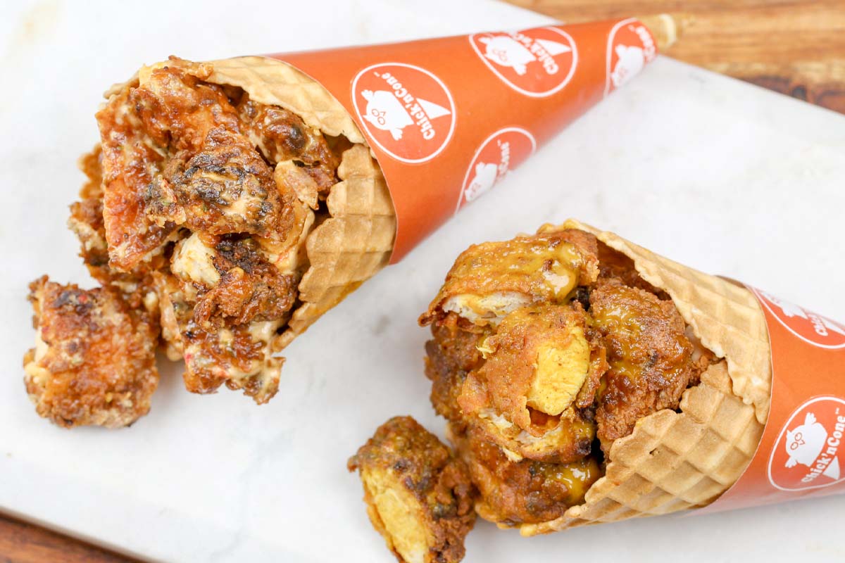 We take pride in our food. That’s why we’ve gone to great lengths to source and prepare the tastiest, crispiest chicken, hand-roll our fresh waffle cones and season our fries with zesty cajun spices… Not to mention our assortment of incredibly tasty sauce options! With our fresh food, fast service and friendly staff, eating at Chick’nCone® is a selfie worthy experience you’ll want to share with your friends and fans!