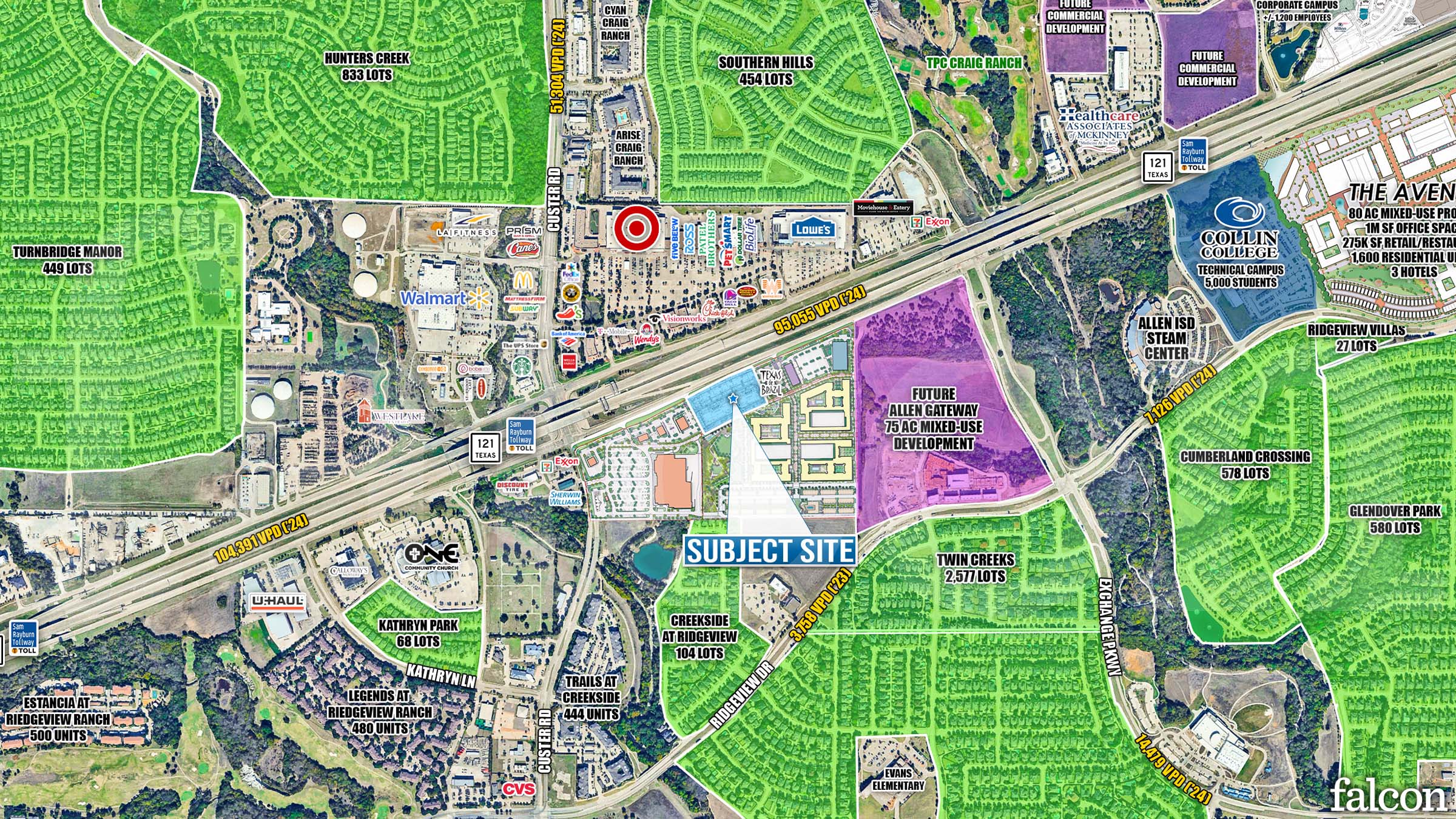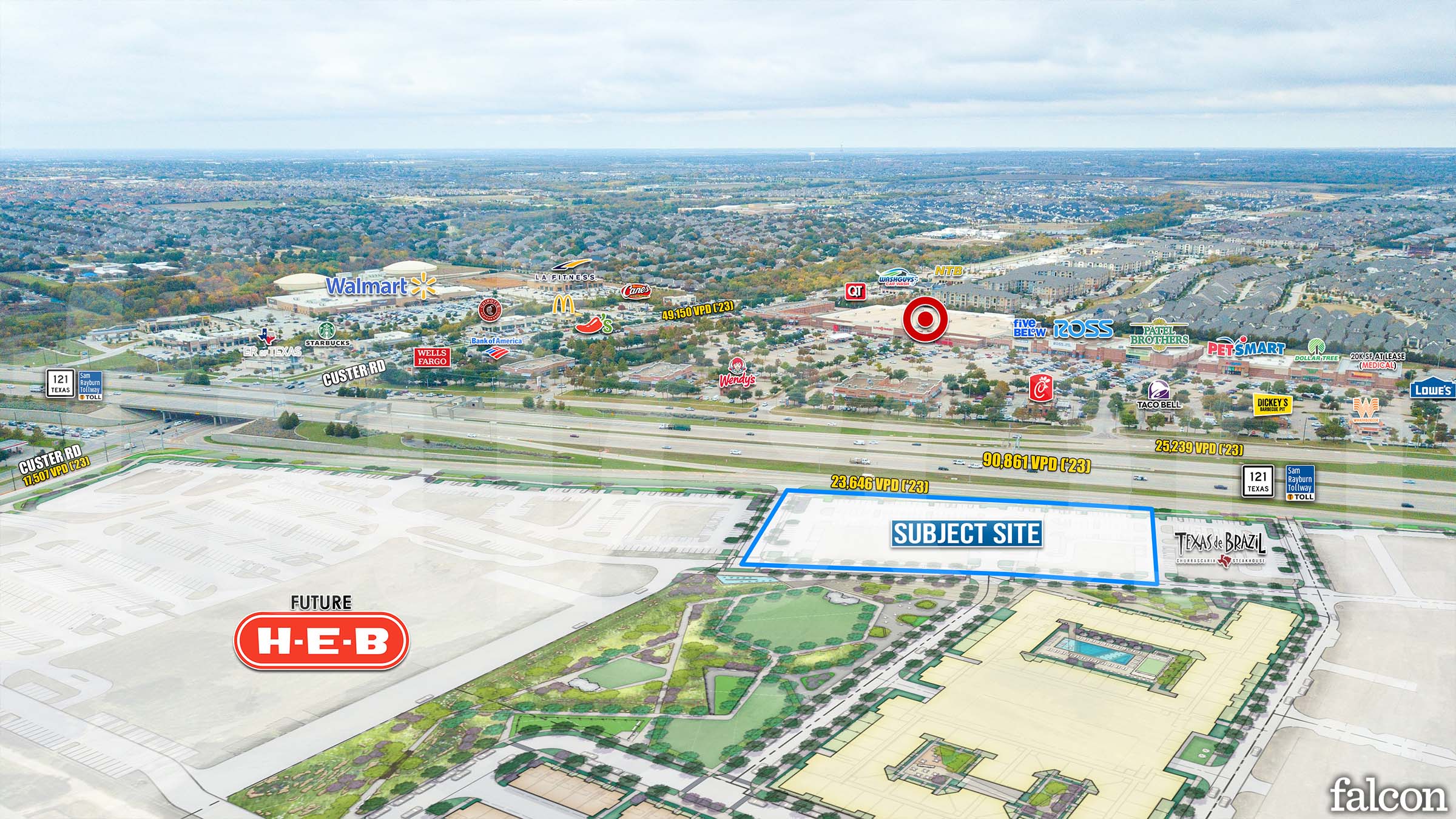 • Opportunity adjacent to future HEB, Urban Park, and Custer 121 multifamily development