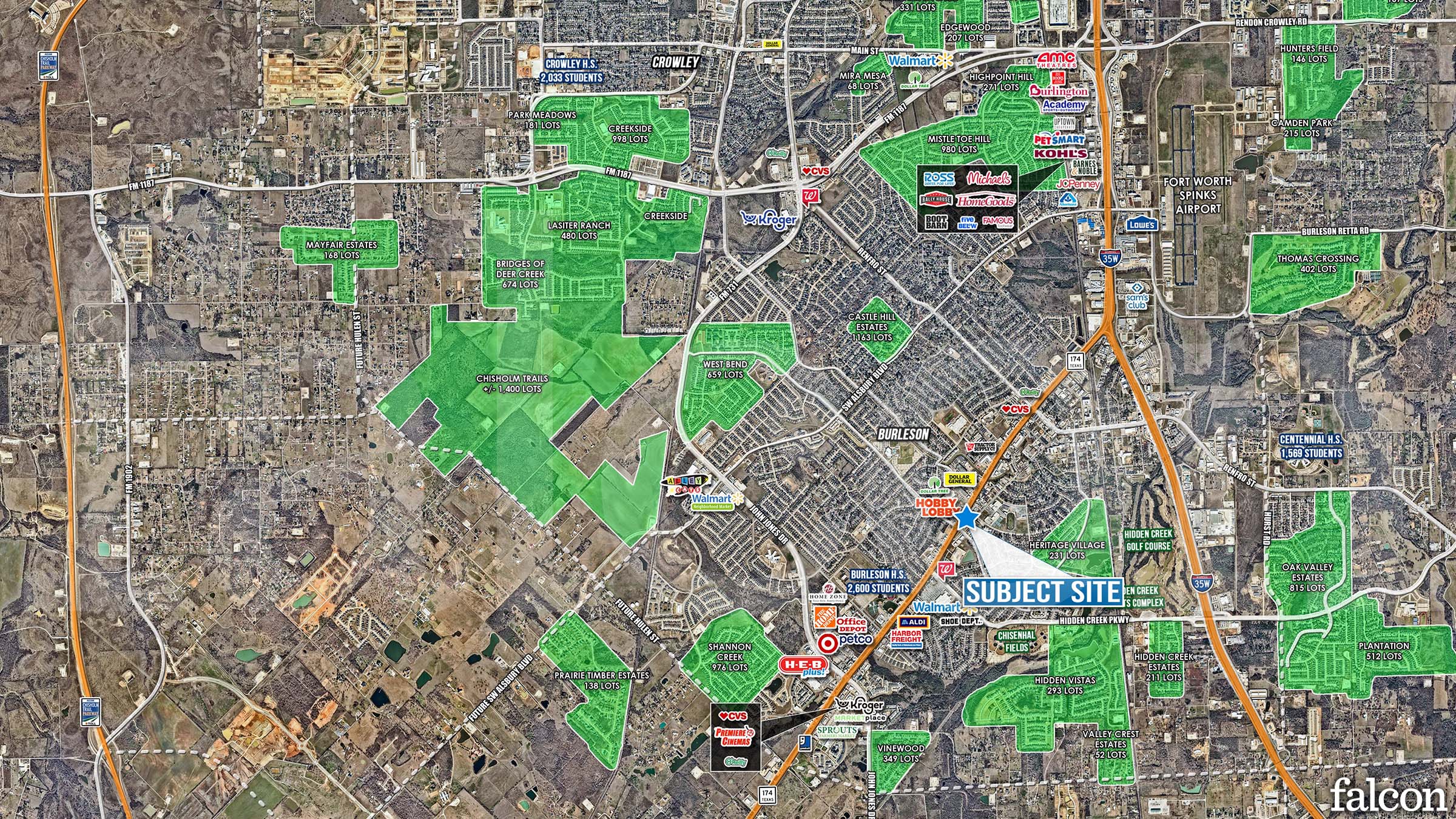 • Area retailers include: Walmart, Hobby Lobby, Planet Fitness, 7Brews Coffee, Raising Cane’s, Chipotle, Dutch Bros, Freddy’s, Whataburger, and more.