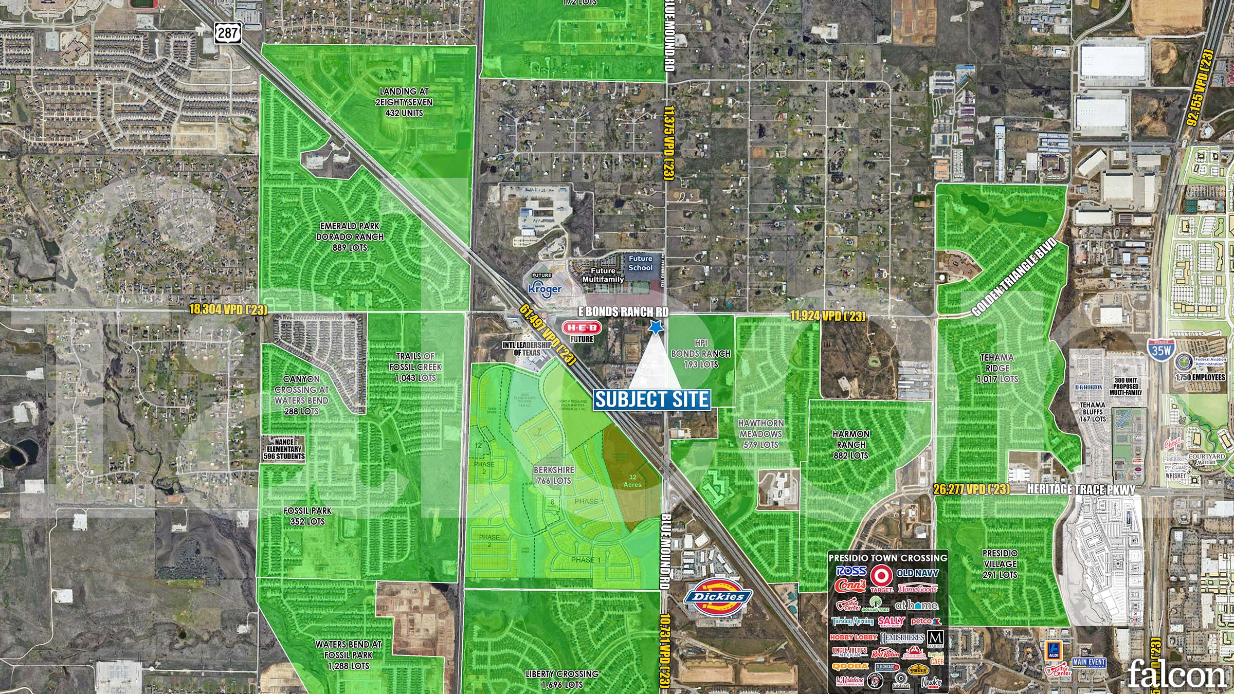• Surrounded by new residential developments including Berkshire (766 lots) and HPI Bonds Ranch (193 lots).