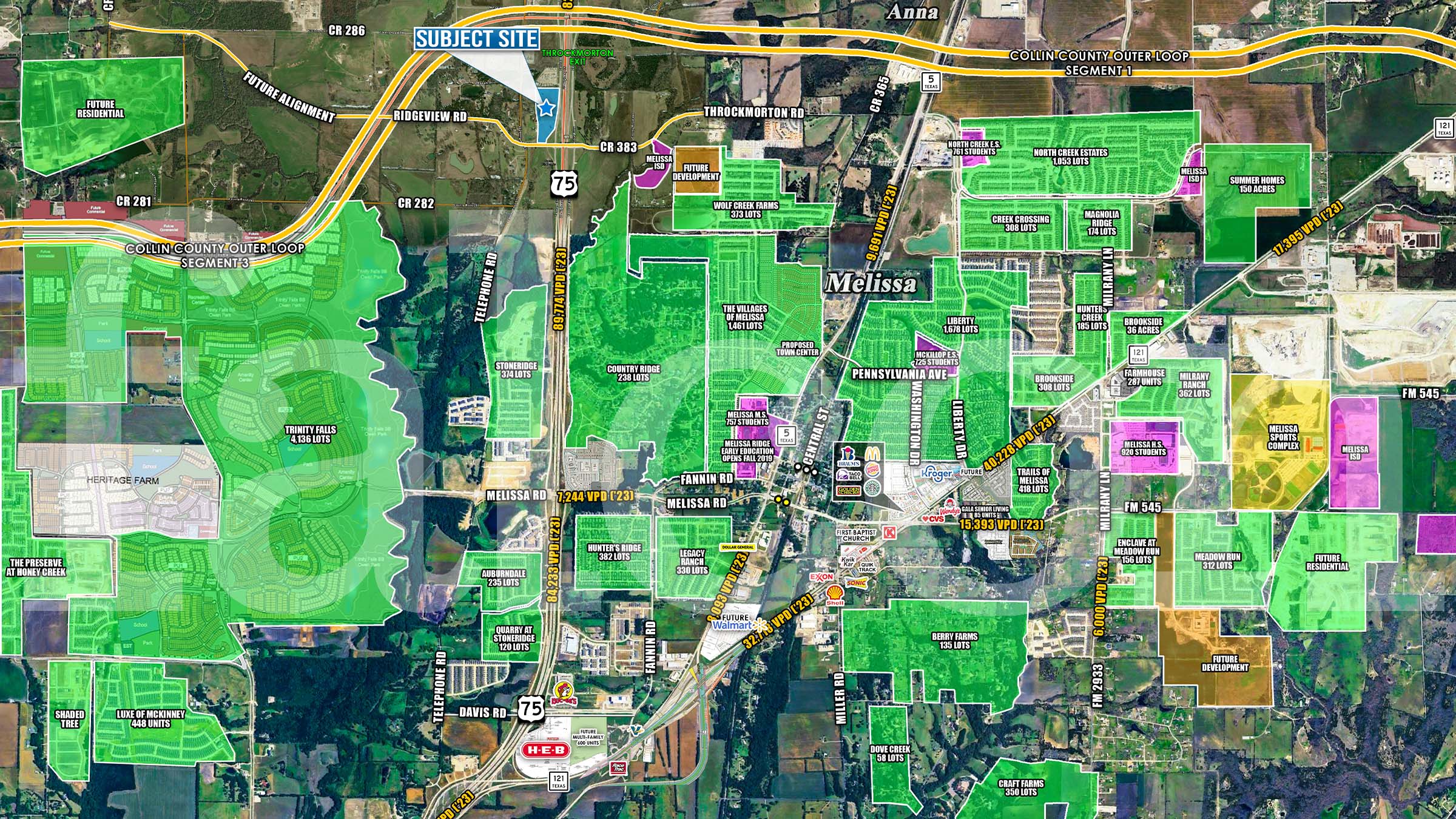 • Located in the Melissa ETJ along the fast-growing US-75 corridor between McKinney and Anna, an area of rapid population growth that continues to attract new commercial development.