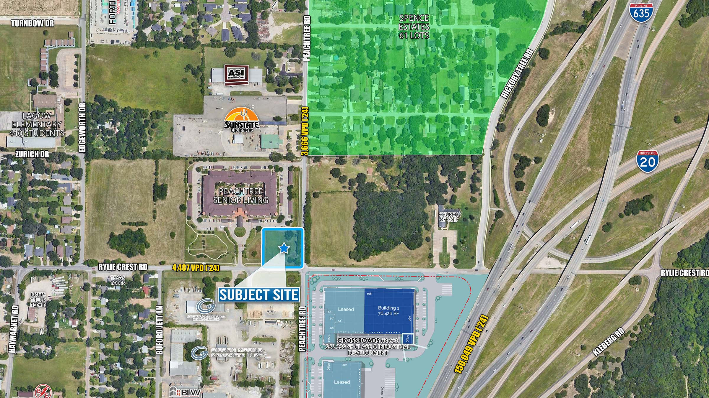 1 acre of commercial land available for sale at the NWC of Peachtree Rd and Rylie Crest Dr in Balch Springs, TX. Adjacent to major new industrial and office/warehouse developments.